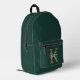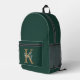 Modern Emerald Green Gold Monogram Script Printed Backpack