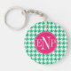 Modern stylish design featuring a emerald green and white houndstooth pattern. Personalize it with your name and monogram on the bright girly pink round frame. Luxury option for the trendy woman! Ideal for animal lovers