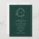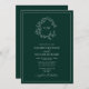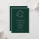 Modern Emerald Green Leafy Crest Monogram Wedding Invitation