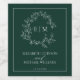 Modern Emerald Green Leafy Crest Monogram Wedding Wine Label