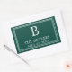 These personalized emerald green rectangular stickers are perfect for a wedding, engagement party, bridal shower or rehearsal dinner favours or as an added detail to any item. The design features the trending dark green colour palette with simple, modern fonts. Customize them with your Initial, name and event date to make them one of a kind!