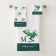 Modern Emerald Green Tree Frog Monogram Name Bath Towel Set