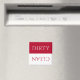 A simple, minimal empire red and white Dirty/Clean dishwasher magnet.