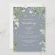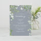 Modern Eucalyptus Foliage Dusty Blue Wedding Invitation. White Typography. No parents listed.