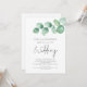 Modern Eucalyptus QR Code Script Wedding Invitation. Add your QR code to your wedding website on the back makes this a convenient option for your guests to RSVP and see all the details without the need for separate RSVP and details cards. A set handwritten style script for Wedding and the rest of the text you can easily personalise. An elegant branch of watercolor sage green eucalyptus leaves is at the top.