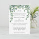 Modern minimalist green watercolor eucalyptus leaves wedding invitation. Personalize text, font style, colour and size.