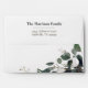 Send your wedding stationery in style with this Modern Eucalyptus Wedding Envelope. Featuring soft eucalyptus leaves, botanical floral buds, and fresh green foliage, the design is enhanced by a minimalist layout and modern typography that highlights your family name and return address. Perfect for botanical or greenery-inspired weddings, this envelope pairs beautifully with eucalyptus wedding invitations, RSVP cards, and more. A refined touch for couples who appreciate simple, nature-inspired elegance.