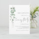 Modern Eucalyptus Wedding Evening Party. Minimalist botanical style to invite your evening wedding guests. A set handwritten script for Evening Party and the rest of the text you can easily personalise. An elegant branch of watercolor eucalyptus leaves runs down the left hand side.