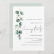 Modern Sage Eucalyptus Wedding Evening Party Invitation. Available dgitally and printed. A Minimalist botanical style to invite your evening wedding guests. A set handwritten script for Evening Party and the rest of the text you can easily personalize. An elegant branch of watercolor eucalyptus leaves runs down the left hand side.