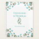 Enjoy this botanical, modern, eucalyptus design in rustic teal. Eucalyptus header and footer that wraps around on spine. On back a floral half wreath with eucalyptus, poppies and peonies. Templates on front, spine and an initial monogram on back. Can be for wedding or anniversaries too!