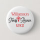 Create a memory keepsake button for your next family reunion. Modern red, white and black design with typography style layout, Features a family tree with a heart in the middle of the tree. Add your name and date of your reunion event.