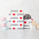 Modern Christmas red heart repeating pattern with the phrase Falalalala. The colour hex code is #FB1016. Modern Falalalala Red Hearts Wrapping Paper.
