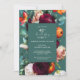A modern fall floral birthday party invitation in a with rich colour palette in jewel tones of teal, burgundy red, russet orange, and blush pink creates a lovely floral border surrounding your text. These colours are often used from late-summer into fall and through the winter months. A thin handwritten script type face spells out the word birthday in carefree style. Personalize the text template with your event details. Shown here as a 40th birthday celebration, you can personalize with any age.