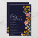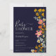 Elegant modern fall winter flowers illustration in red, green, orange and teal script baby shower with a modern calligraphy typography on editable dark navy blue.