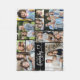 Modern Family 11 Photos Script Heart Name Custom Fleece Blanket. Wrap your loved ones in comfort and photo memories with this photo blanket featuring an easy-to-upload photo collage template with 11 square and rectangle pictures in various sizes, the title FAMILY in a modern script typography accented with a heart swash and personalized with a family name in your choice of text, graphics and background colours (shown in white on black). Soft and cozy, this blanket makes a heartfelt gift or a meaningful addition to your own home décor. Perfect for snuggling on the couch, displaying as a keepsake or commemorating a special occasion or milestone. BLANKET OPTIONS: The sample is shown in the Small 30x40" Fleece blanket--other sizes are available on the ordering page or transfer to a Sherpa blanket or other product. ASSISTANCE: For help with design modification, resizing or transferring the design, contact the designer BEFORE ORDERING via the Zazzle Chat MESSAGE tab or email makeitaboutyoustore@gmail.com.