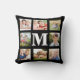 Create your own modern black and white 8-photo decorator pillow personalized with your monogram/initial