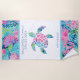 Get ready for your next tropical getaway or ocean adventure with this cute and modern personalized beach towel! Perfect for a cruise ship vacation, this beach towel can be customized with your family name, cruise type, year etc. Featuring navy blue typography and a bold pink, blue, and green sea turtle design swimming in coral, it adds a stylish touch to your travel accessories. Let this pool towel be a reminder to stay happy floating in the sea wherever your travels take you. Add a touch of tropical charm with this unique and vibrant pool accessory.