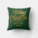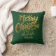 This simple and stylish holiday pillow features a stunning faux gold script typography that says "Merry Christmas" on a black background.