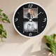 Create your modern family keepsake 2 photo collage clock. Modern black and white design for your home with 2 custom photos. Numbers are white on a black background. Personalize with 2 of your favourite family photos and make your own personalized wall clock for your home or a gift.