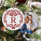 Modern Family Monogram Christmas Photo Ceramic Ornament