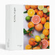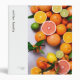 Modern family recipe binder features a simple design with stylish font and orange citrus photo. Custom couple name and family name recipes presented on the front and spine in stylish simple font. A personalized congratulatory wedding message with love message in elegant script on the back. A simple family recipe binder makes for the perfect personalized wedding gift for the bride and groom.