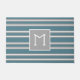 Modern design features a turquoise background with a simple stripe pattern in grey and white. Customize with a single initial monogram.
