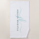 Personalized modern beach towel with simple, fancy script script initials or monogram and name in your choice of colours (shown in teal and turquoise on an editable white background colour for a stylish look. CHANGES: Change the background colour, choose a styled graphics background or change the text font style, colour, size and placement in EDIT for a custom design. ASSISTANCE: For help with design modification or personalization, colour change, resizing, transferring the design to another product or you would like coordinating items, contact the designer BEFORE ORDERING via the Zazzle Chat MESSAGE tab below or email makeitaboutyoustore@gmail.com.