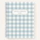 Custom-designed recipe notebook featuring custom name on soft dusty blue buffalo check pattern.