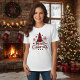 This cute modern farmhouse t-shirt features a red and black buffalo plaid evergreen tree, snowflakes and "Merry Christmas" greeting.