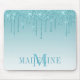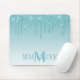 Modern Elegant Fashionable and Trendy Aqua Blue Glitter Mouse Pad personalized with your Monogram Initial and Name. Dripping Glitter with sparkles.