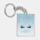 Modern Elegant Fashionable and Trendy Light Blue Keychain personalized with your Monogram Initial and Name. Sparkling Eyelashes. Dripping Glitter with sparkles.