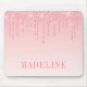 Modern Elegant Fashionable and Trendy Pink Blush Glitter Mouse Pad personalized with your Name. Dripping Glitter with sparkles.