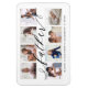 Send a beautiful personalized gift to your dad (father) that he'll cherish forever. Special personalized photo collage magnet to display your own special family photos and memories. Our design features a simple 8 photo collage grid design with "father" designed in a beautiful handwritten black script style. Each photo is framed and centred within a simple gold-coloured border. Customize with family names.