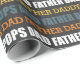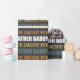 A fabulous modern typography father's day gift wrapping paper in shades of orange, white blue and yellow on a black background. Make sure every gift you give has a layer of love with la Bluebird custom wrapping paper. Available in four types of premium paper and five different sizes, our wrapping paper has all of your gift wrapping needs covered - because the presentation matters just as much as the present!! © Julie McIver