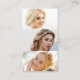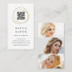 Striking business cards feature an abstract element in faux gold, encircling a customizable QR code. Personalize with three custom text fields beneath, for your name or business name, title, and contact details. Add three photos to the back to showcase your photography, aesthetics, or hair and makeup.