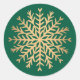 Modern Faux Gold and Green Snowflake Christmas Classic Round Sticker