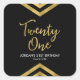 This modern square sticker features an elegant geometric chevron design and the word "Twenty One" in faux gold against a black background; perfect for a 21st Birthday Party. Check out matching invitations and items here http://www.zazzle.com/collections/modern_faux_gold_chevron_celebration_collection-119531050277382712?rf=238364477188679314