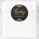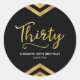 This chic round sticker features an elegant geometric chevron and the word "Thirty" in faux gold against a black background. It's great for a 30th birthday celebration. Check out matching invitations and items here http://www.zazzle.com/collections/modern_faux_gold_chevron_celebration_collection-119531050277382712?rf=238364477188679314