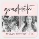 Modern and chic sticker with black graduate script typography, two photos, name and class year in black text on a blush pink background.