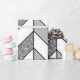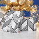 This wrapping paper features an elegant chevron design with a geometric herringbone pattern in white and faux silver glitter with black lines.