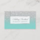 Modern faux silver glitter with customizable turquoise robbin egg blue teal with faux silver gold frame ombre makeup artist business card.