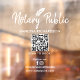 Elegant notary public business window decal is perfect for your marketing efforts! The custom notary decal is able to be edited to fit your brand. The modern minimalist sign features a transparent background with white script font and includes the notary name, a built-in editable QR code, business website, and social media icons and the quote "follow me" along with both Facebook and Instagram icons.