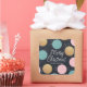 A modern Christmas sticker with colourful festive - gold glitter, pink, and blue - dots. The phrase "Merry Christmas" is set in an whimsically handwritten font.