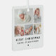 Modern 5 multi photos on a grid displaying your favourite newborn infant photos for their first Christmas metal ornament.