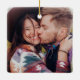 For your first Christmas engaged this personalized modern holiday ornament features your faded photo on the front with an overlay and text below that reads "Our First Christmas Engaged" with your first names joined by a heart and year to customize. The back of the ornament has a 2nd photo for you to change to your own. Best of luck on your future wedding! Designed by artist ©Susan Coffey.