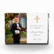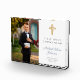 Personalized Modern First Holy Communion Boy Picture Photo Block Home Décor. Part of the Dusty Blue Script Cross Boy First Communion Suite with matching invitation, stationery and first communion party accessories.