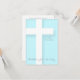 Simple and large white Christian Cross with soft drop shadow on pale turquoise background.Design on flat card invitation with texts for First Holy Communion to customize. You can easily change text (colour, font, size and position) by clicking the customize button. Matching guest books (hard cover and spiral notebook).