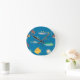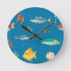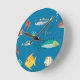 Modern Fish and Seahorse illustrated Pattern Blue Round Clock