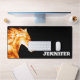 This desk mat design features the bust of a flaming horse in orange, red, and yellow on a black background. Unique and modern. Add a name to personalize it. Makes a great gift for the horse lover in your life. Created by Simply Farmhouse Press.