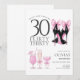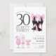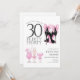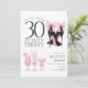 Celebrate in style with this flirty thirty invitation featuring chic, trendy and modern black high heels adorned with pink bows and elegant pink cocktails. Perfect for a glamourous 30th birthday party.
